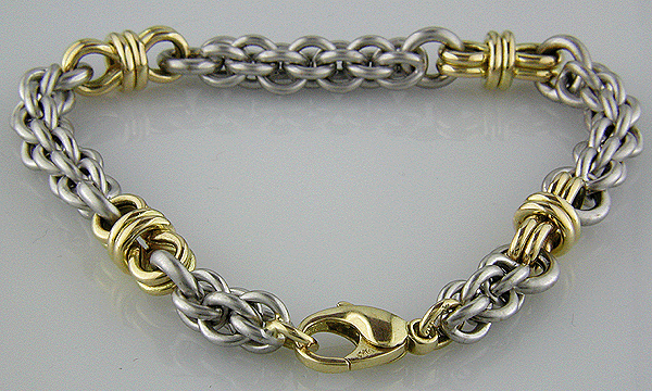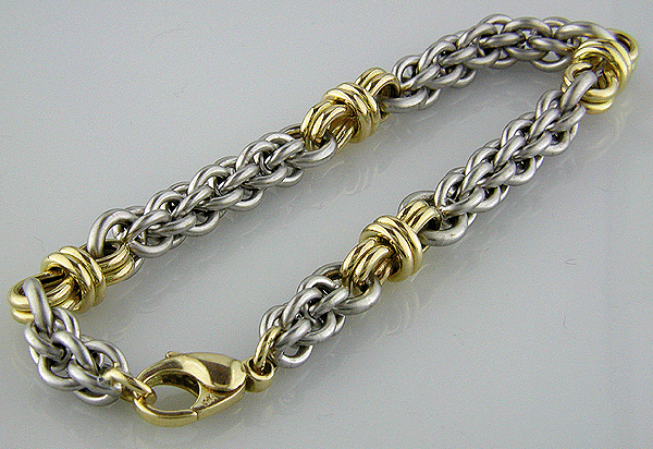 18kt Satin & Bright Finish Gold"Two-Tone Link" Bracelet |